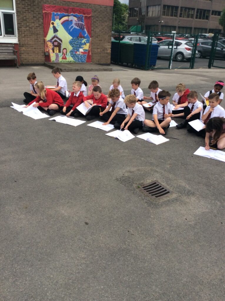 We also looked at the booklet made for the opening of the school in 1965. In it, some children who attended St.Alban’s had sketched the school building. We decided to have a go at completing our own sketches of the school now!