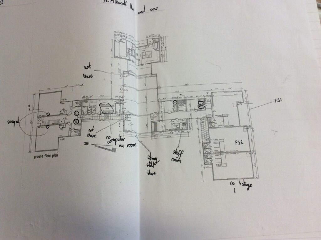 We then had a look at the original plans for the school building and made comparisons to the building today. We went on a walk around the school noting down similarities and differences.