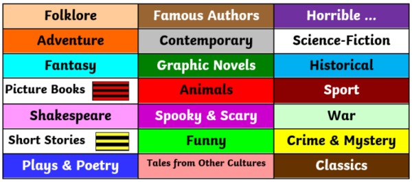These books have then been categorised, like a real library, to allow children to choose books based on their preferences. Once they have chosen a category, they can easily check whether it is a 3/4 book or 5/6 book to determine whether it will be accessible for them.